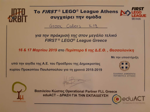 Ο διαγωνισμός όμως παρέμενε ένας σταθερός μου στόχος. Με την πάροδο του καιρού έμαθα να λειτουργώ μέσα στην αγωνιστική ομάδα. Έμαθα να λειτουργώ με τις αξίες του FLL και να τις ενσωματώνω στην ζωή μου. Έμαθα να δουλεύω ως ερευνητής. Και πάνω από όλα, συνεργάστηκα, έμαθα και χάρηκα!