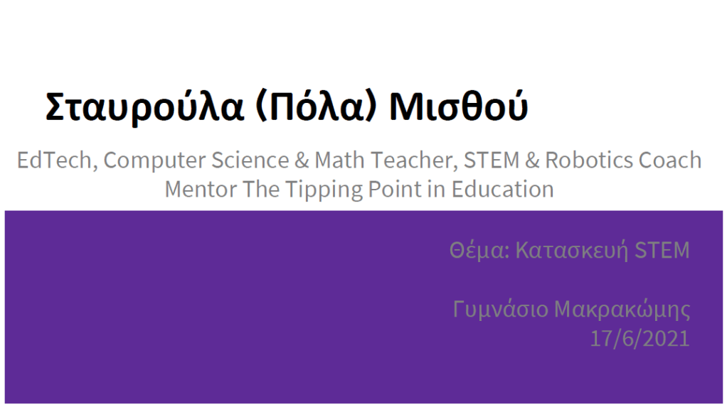 MENTORING στην δράση The Tipping Point in Education στο Γυμνάσιο Μακρακώμης. Είναι ελπιδοφόρο ότι σχηματίζονται ομάδες STEM και ρομποτικής στα σχολεία, με στόχο να επιλύσουν ένα πρόβλημα της περιοχής τους.