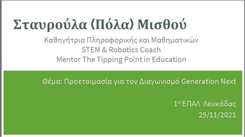 Θέμα: “Προετοιμασία για τον Διαγωνισμό Generation Next”.