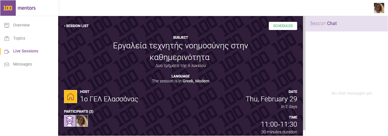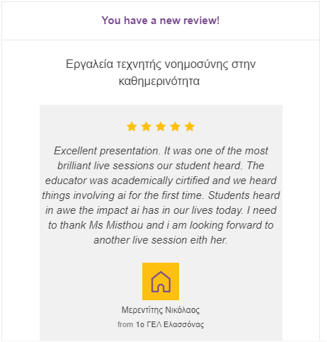 Στις 29 Φεβρουαρίου 2024 στη διαδικτυακή συνεδρία mentoring με τη δράση “The Tipping Point in Education” συζητήσαμε για ψηφιακά εργαλεία και Τεχνητή Νοημοσύνη με 2 τμήματα της Α’ Λυκείου του 1ου ΓΕΛ Ελασσόνας.