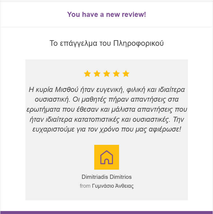 Οι μαθητές και οι μαθήτριες ήθελαν να ενημερωθούν για το επάγγελμα του/της Πληροφορικού, τις σπουδές στην Τεχνητή Νοημοσύνη και για το αν υπάρχουν στερεότυπα στον ανδροκρατούμενο κλάδο της Πληροφορικής.